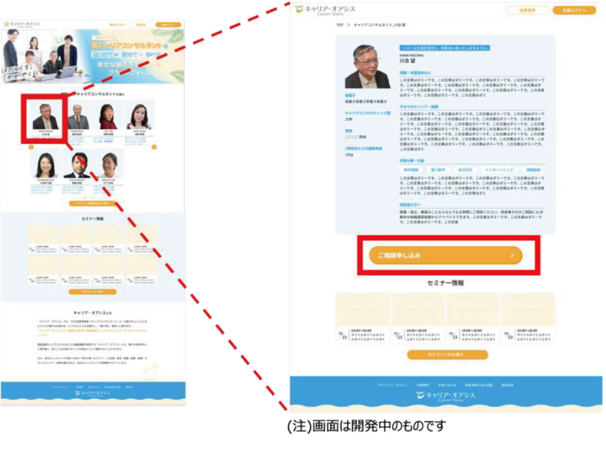 当サイト上に掲載されているキャリアコンサルタントから、気になるキャリアコンサルタントの画像をクリックすると、詳細なプロフィールが表示されます。