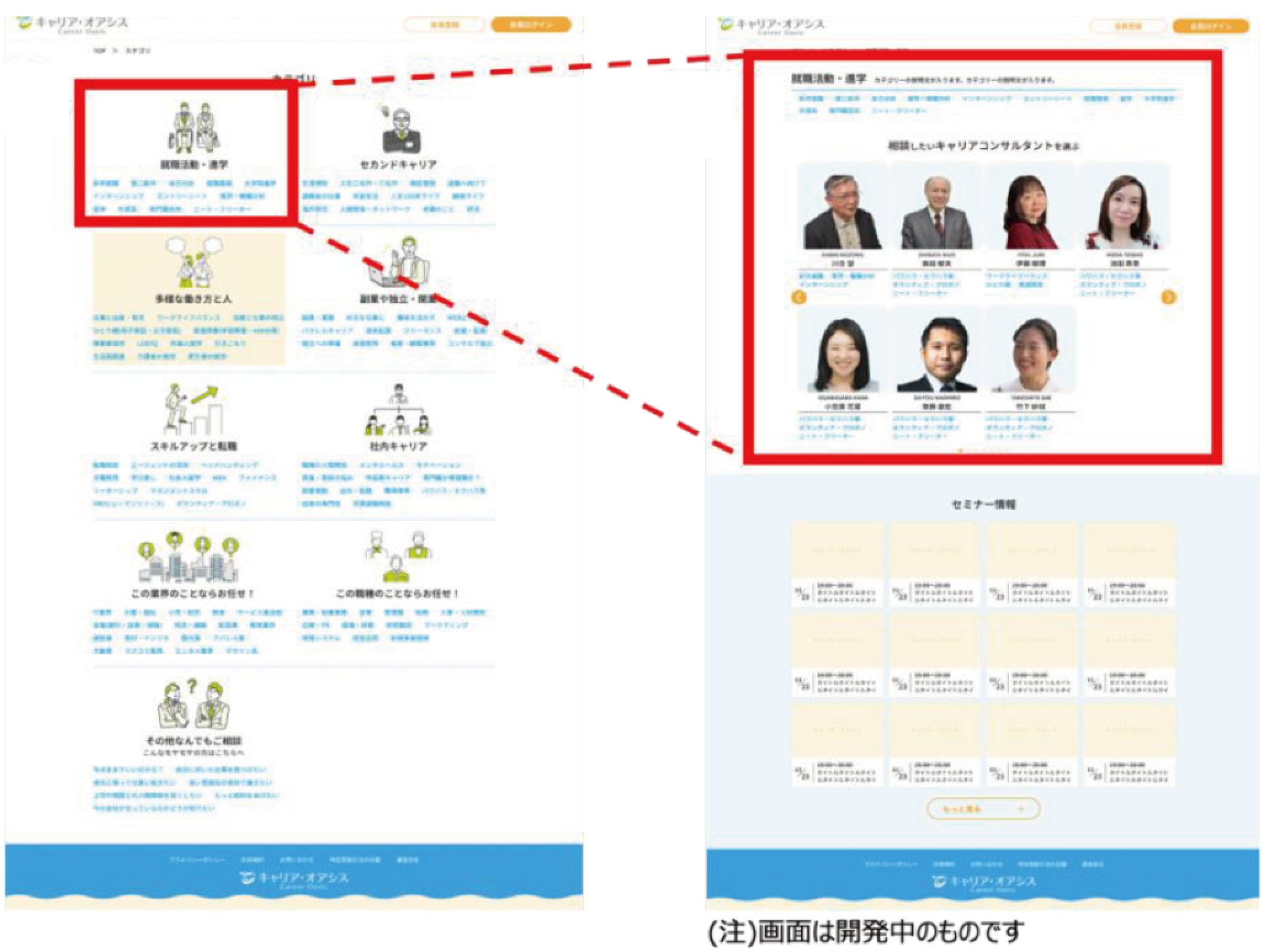 カテゴリーを選ぶと、そのカテゴリーに詳しいキャリアコンサルタントが表示されるので、「キャリアコンサルタントを選ぶ」と同様に手続きください。