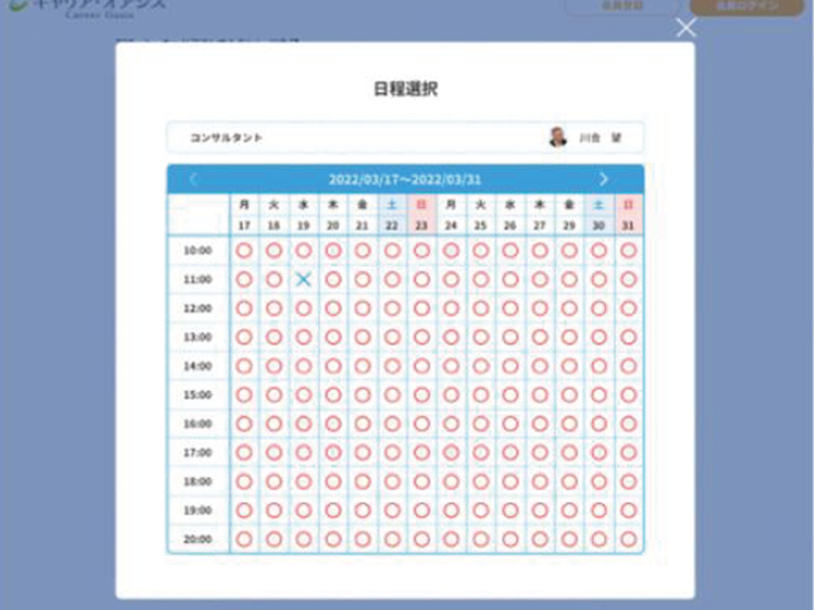 相談したいキャリアコンサルタントを選択したら、相談日程を選択します。