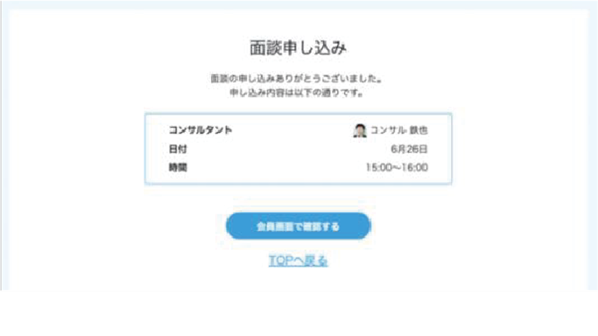 日程を選択すると面談申し込み画面に切り替わります。