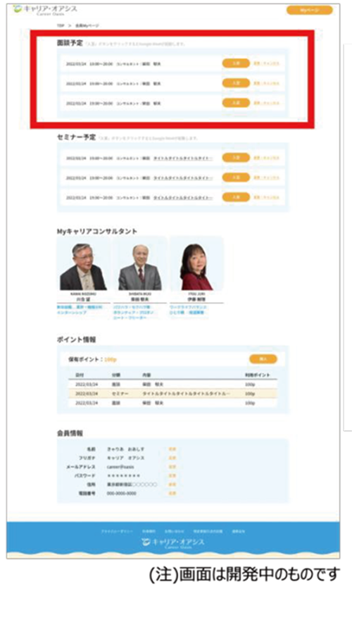 相談当日になりましたら、Myページの面談予定から「入室ボタン」を押してください。