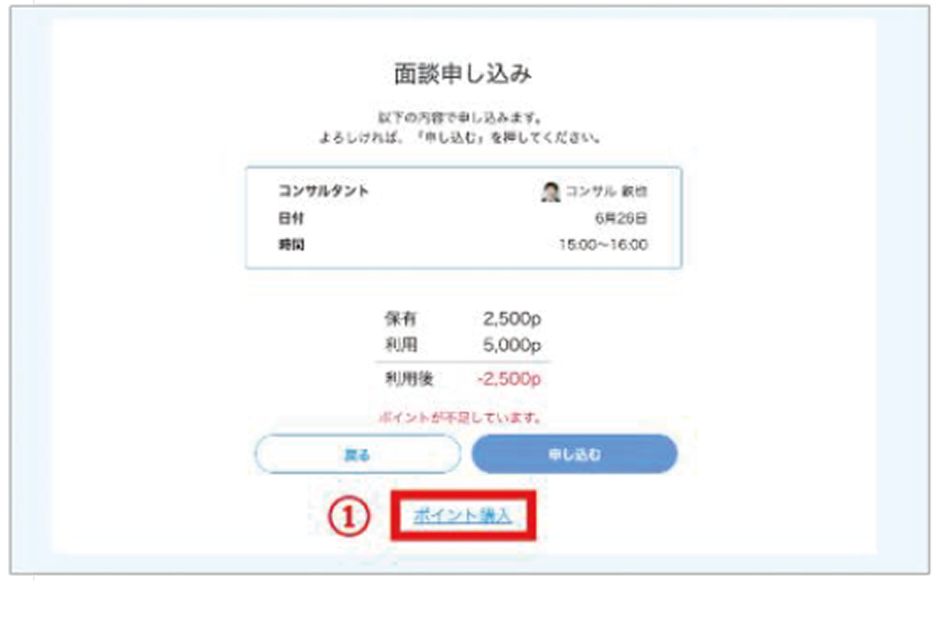 - 日時・必要ポイントをご確認の上、「ポイント購入」リンクを押してください。