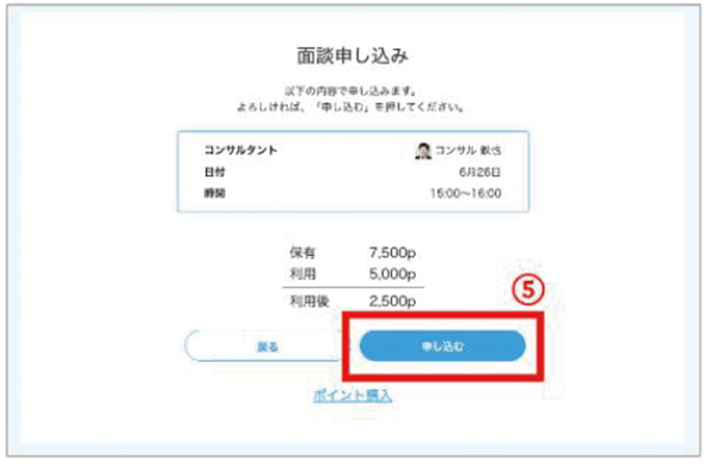 相談日時の5日前(120時間前)までにキャンセルされた場合、ポイントは返却されますが、 相談日時の5日前(120時間前)を過ぎてキャンセルされた場合、ポイントは返却されません。